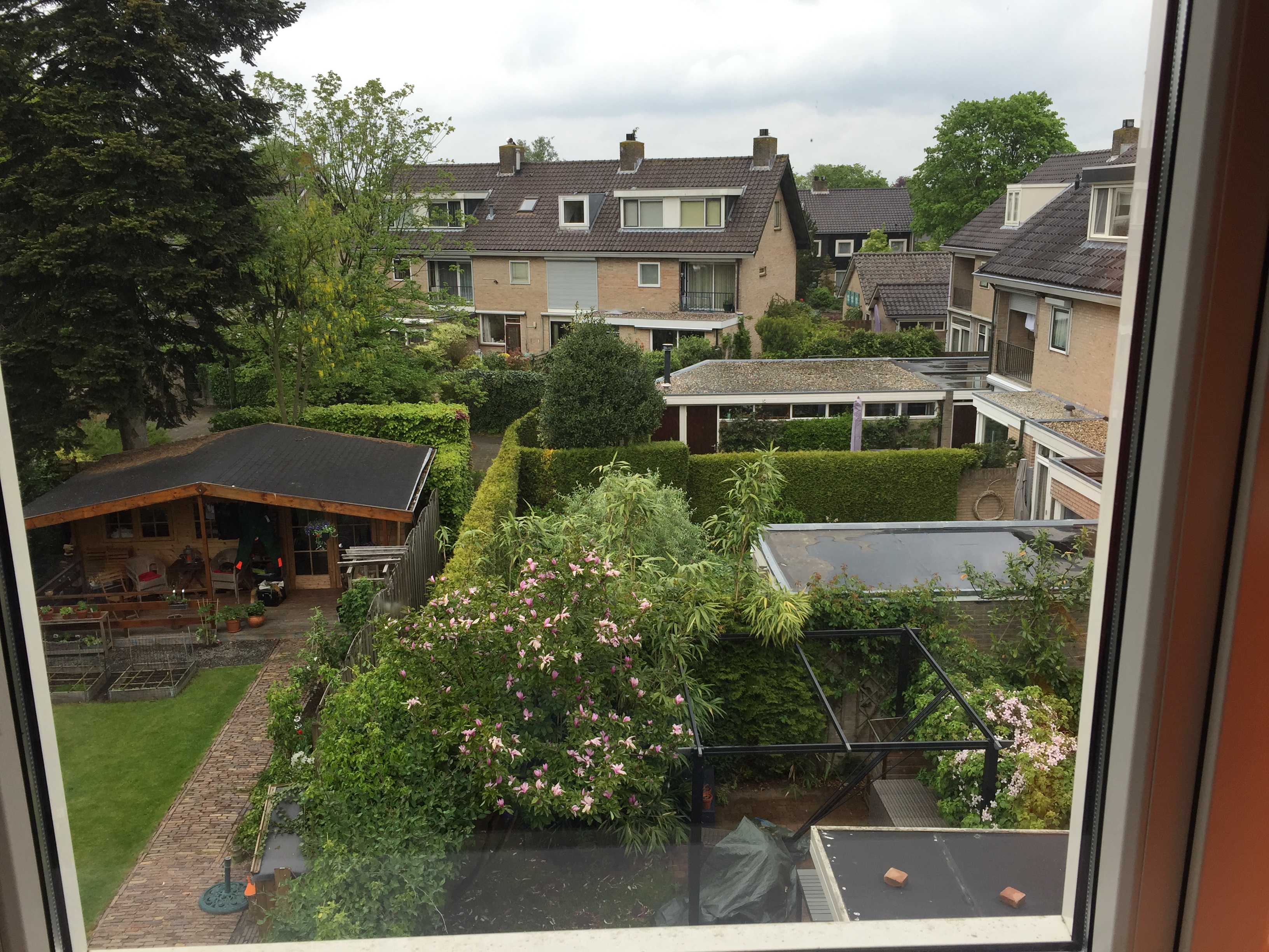 Despite the rain and malaise of the weather, it was a great drive into Leusden-Zuid (South), which apparently is the “nice side” of Leusden as Jerome joked. His neighborhood and his home are idyllic. A dutch home in all its efficiency. It is three stories, my room is on the top floor. It overlooks the patio and garden area in the back, as well as a great view of more of his neighborhood. It is a scene from a picture book. I realize its normal here, and nothing special per se, but for me it is. It represents someone else’s life, which is different than my own, and is being shared with me. I also realize that there are places like this in the states, and in Rwanda, and in the Philippines, and in Brazil. Which reminds me of how much we share as humans – and how many humans don’t have this, in any form, because of the injustice of this world. I’m sure I’ll have more to say about that later. Needless to say, the home and my room is perfect.